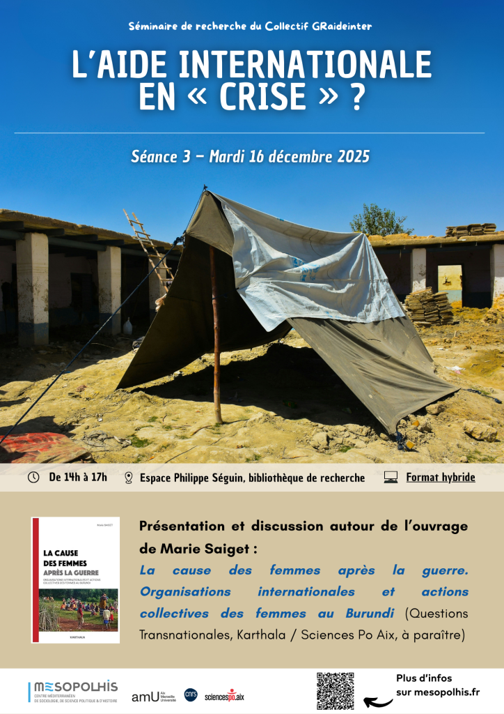 → Marie Saiget, La cause des femmes après la guerre. Organisations internationales et actions collectives des femmes au Burundi, Questions Transnationales, Karthala/Sciences Po Aix (à paraître).
