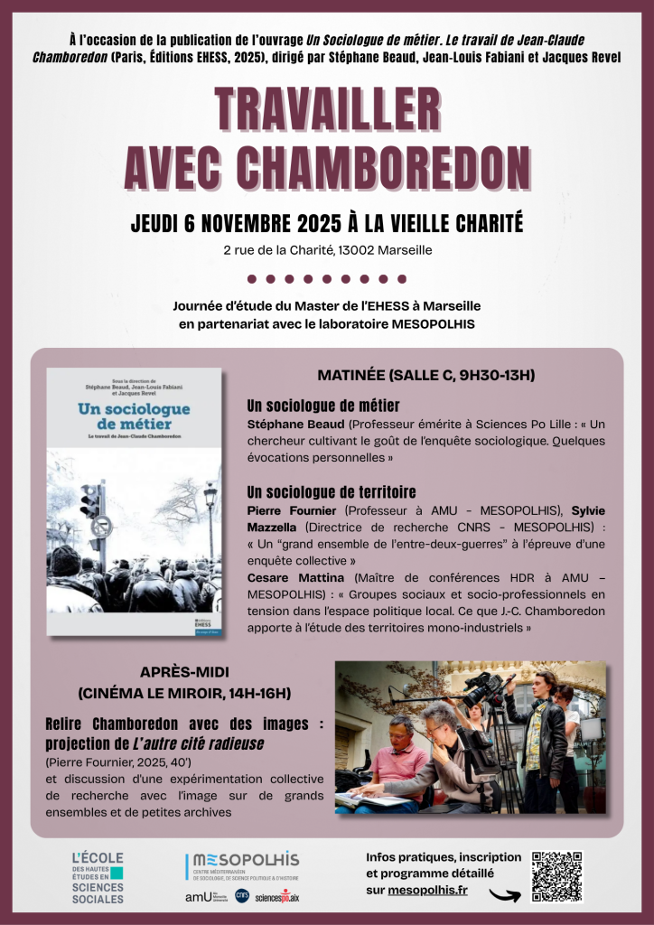 Présentation de l’ouvrage Un sociologue de métier. Le travail de Jean-Claude Chamboredon (Paris, Edition de l’Ecole des hautes études en sciences sociales, 2025), dirigé par Stéphane Beaud, Jean-Louis Fabiani et Jacques Revel – avec des contributions de S. Beaud, S. Bonnéry, A.-E. Demartini, J.-L. Fabiani, P. Fournier, P. Lassave, J.-P. Mathy, S. Mazzella, P.-M. Menger, E. Mension-Rigau, G. Noiriel, P. Pasquali, J. Revel, F. Weber et P.-P. Zalio, ainsi que des textes de J.-C. Chamboredon.