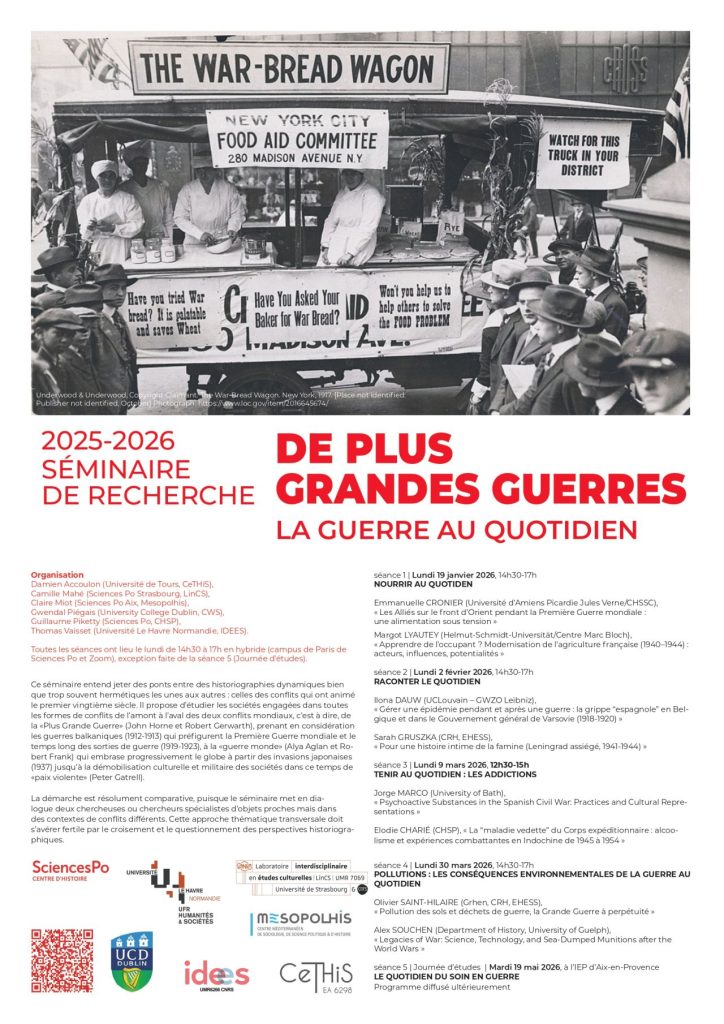 10June0 h 00 min0 h 00 min0 h 00 min - 0 h 00 min Axis 5 study day / «De plus Grandes Guerres» seminar, session 5: «Everyday care in war».»