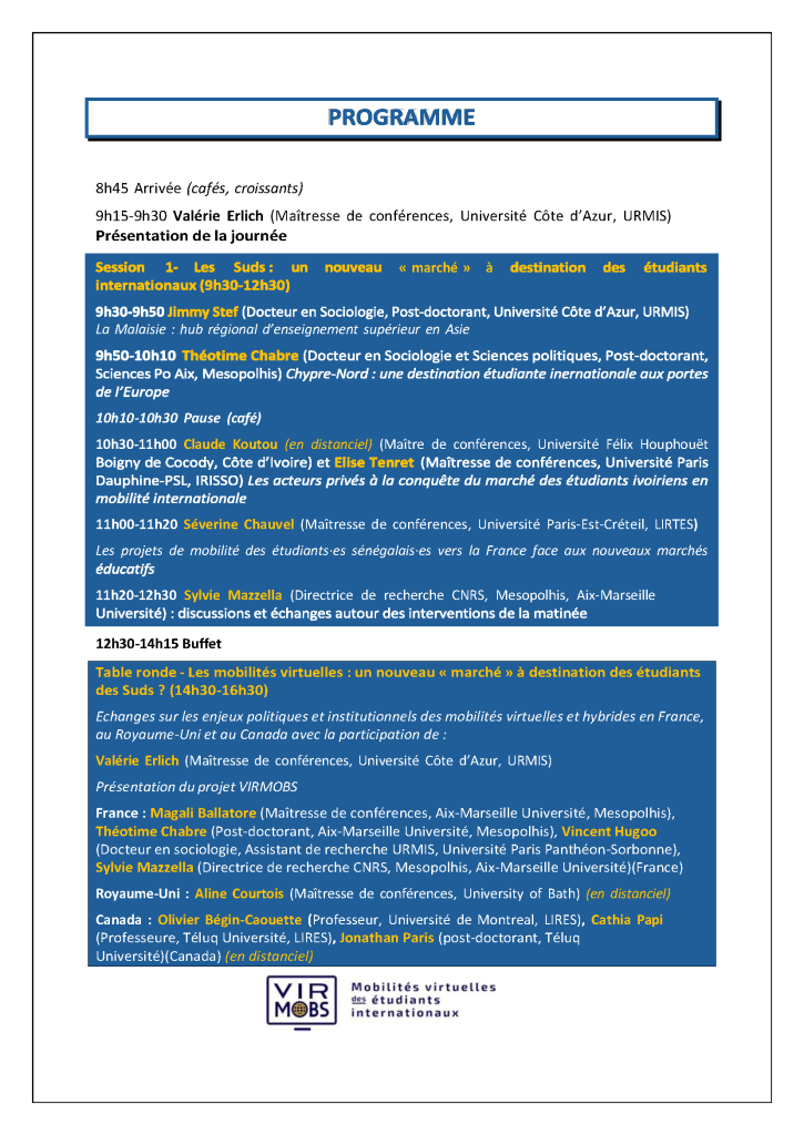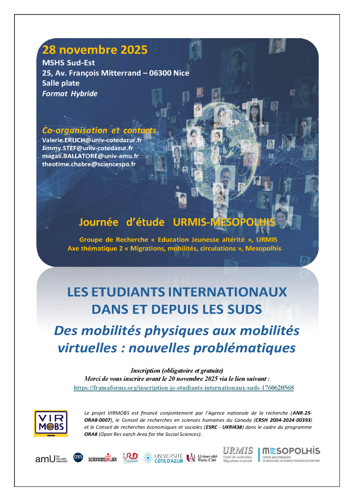 MESOPOLHIS (axis 2)/URMIS study day: «International students in and from the South. From physical to virtual mobility: new issues».»